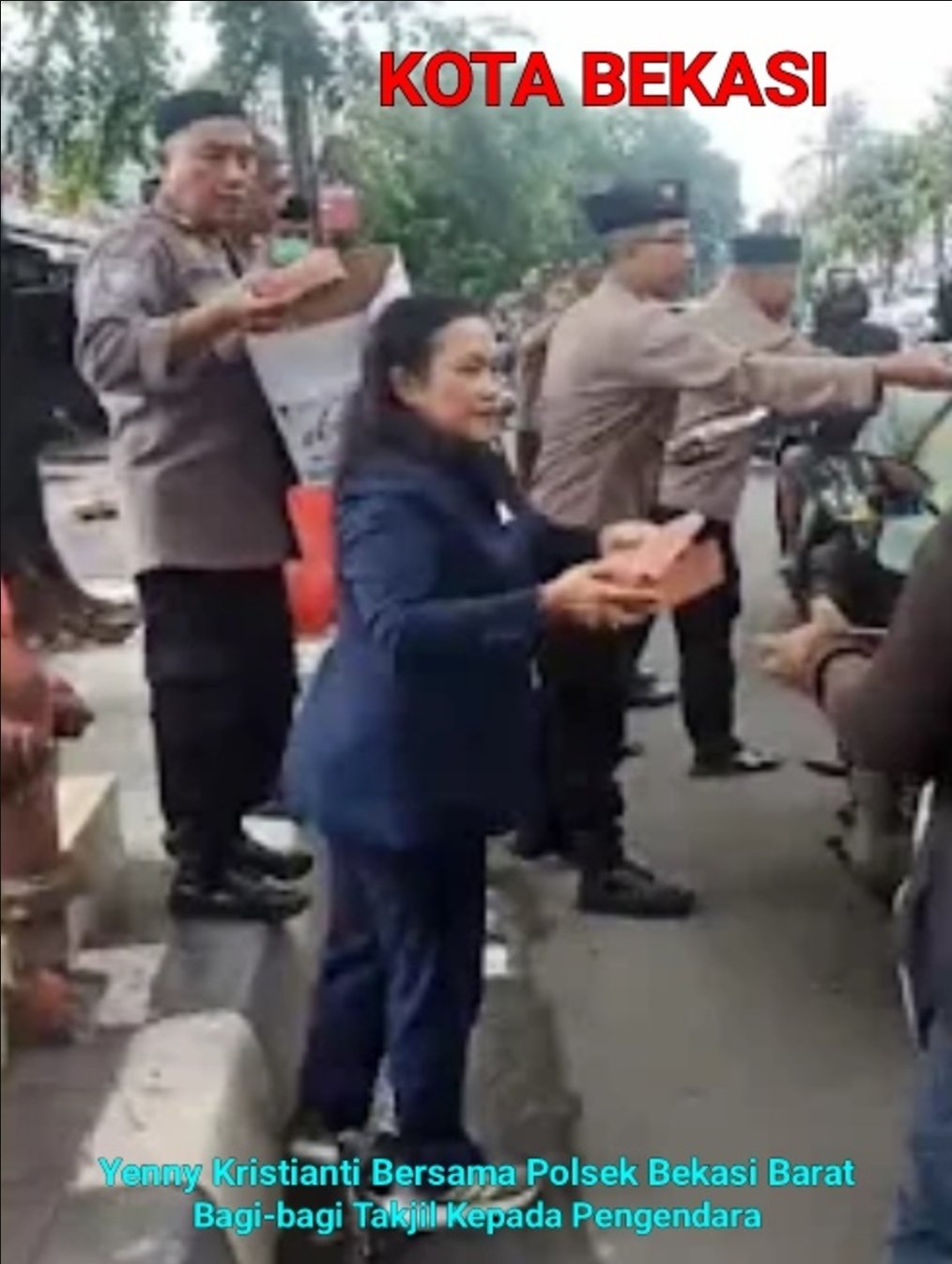 “Ramadhan Penuh Berkah, Anggota DPRD Kota Bekasi Yenny Kristianti Bersama Polsek Bekasi Barat Bagi Ratusan Takjil untuk Pengendara.”