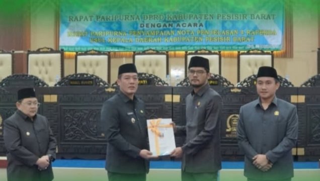 ‎Dalam penyampaiannya Bupati, Dedi Irawan menguraikan empat Ranperda usul kepala daerah, diantaranya yakni ranperda tentang pembentukan dan susunan perangkat daerah Pesibar, ranperda tentang tata cara penyelenggaraan cadangan pangan daerah, ranperda tentang penyerahan prasarana, sarana dan utilitas umum perumahan, dan ranperda tentang penyelenggaraan kearsipan.