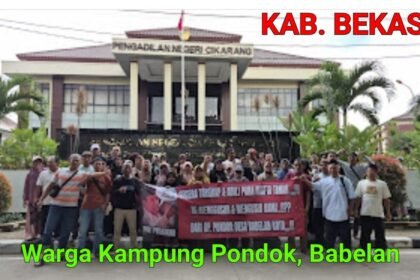 Bekasi, sidikbangsa.com – Puluhan warga Kampung Pondok, Desa Babelan Kota, Kabupaten Bekasi, terancam kehilangan tempat tinggal yang telah mereka huni secara turun-temurun. Lahan seluas 23.380 m...