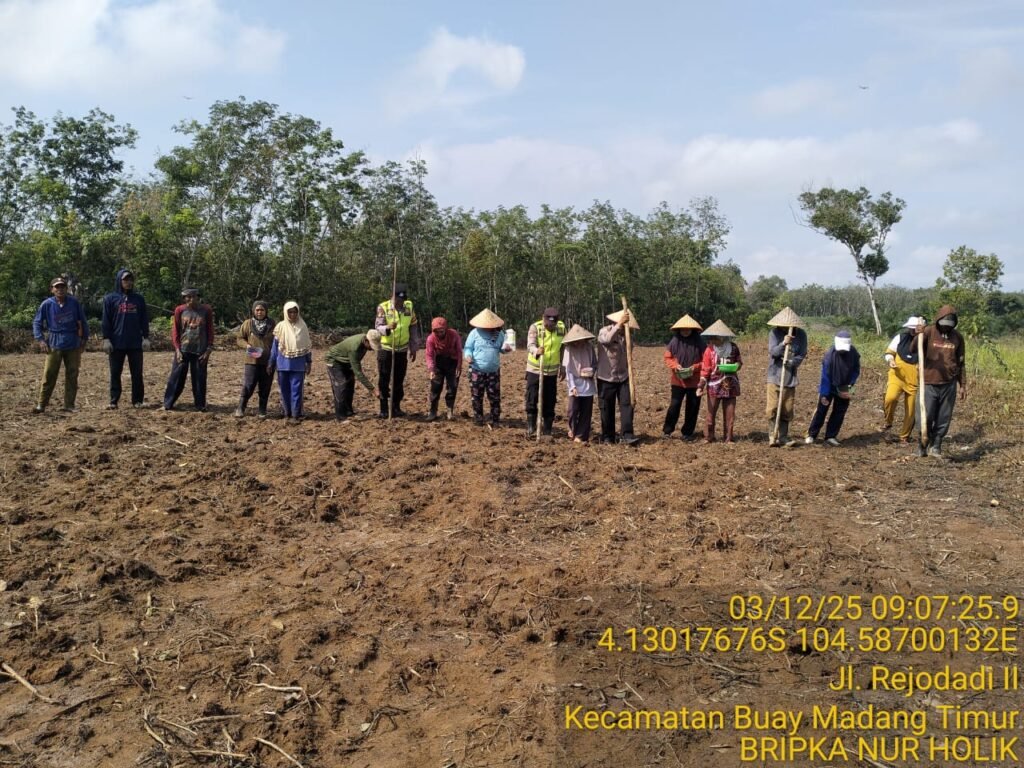 Dukung Ketahanan Pangan, Polsek Buay Madang Timur Turun Langsung Tanam Jagung di Desa Gumuk Rejo