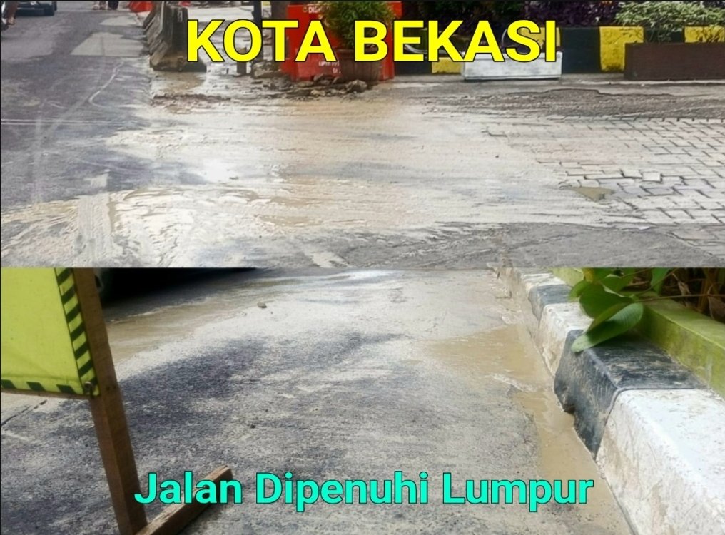 “Lumpur dari Galian Pipa PAM Meluber di Jalan Kemakmuran Bekasi, Warga Khawatir Picu Kecelakaan.”