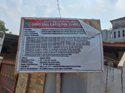 Dalam data yang beredar, paket konsolidasi tersebut tercatat dikerjakan oleh PT Edtri Gracia Abadi dengan nilai kontrak Rp 1,5 miliar lebih. Selain itu, terdapat proyek peningkatan saluran di lokasi yang berdekatan, yakni RW 16 dan RW 37 serta beberapa RW lainnya, yang disebut-sebut dikerjakan oleh CV Lego SM dengan nilai kontrak mencapai Rp 1,4 miliar lebih.