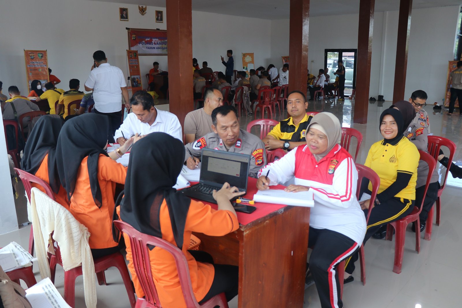 Kegiatan pemeriksaan kesehatan berkala ini meliputi pemeriksaan tekanan darah, pemeriksaan laboratorium, kesehatan gigi dan mulut, serta pemeriksaan penunjang lainnya, yang dilaksanakan oleh tim medis bekerja sama dengan Biddokkes Polri.