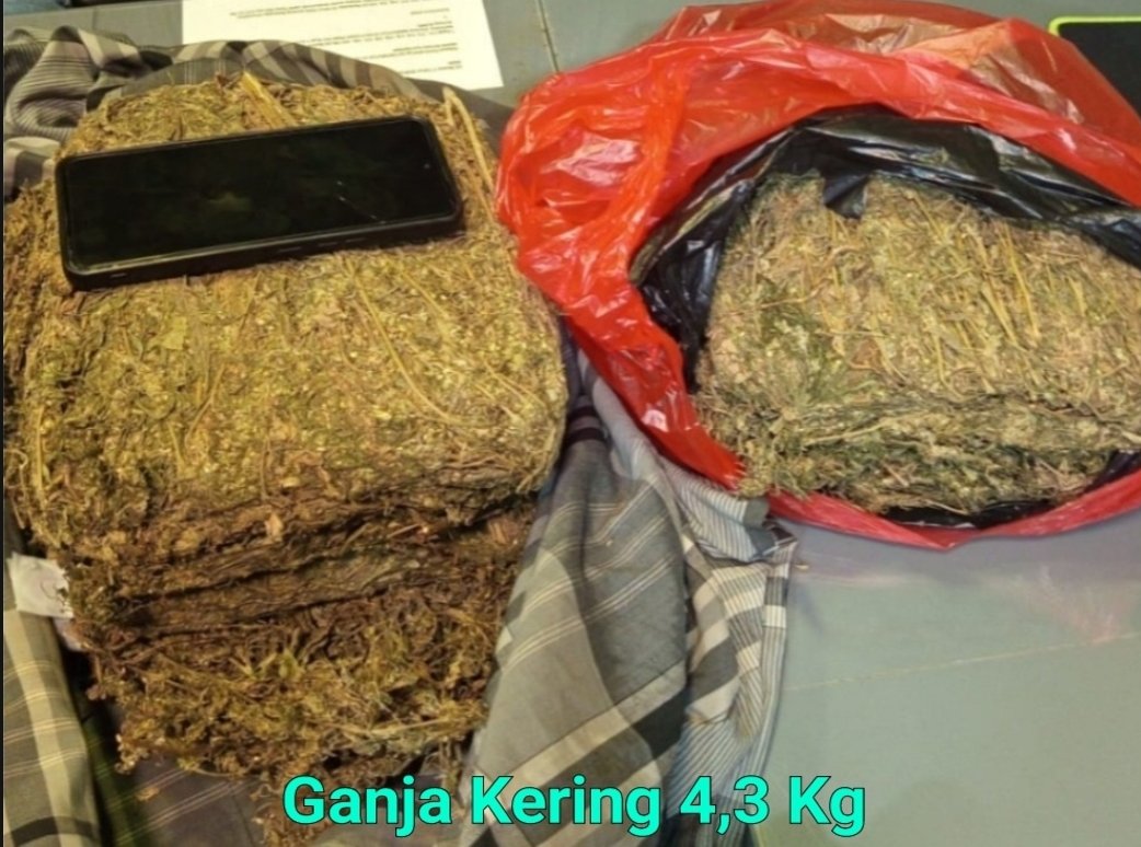 Dari pengungkapan kasus ini, polisi berhasil menyita barang bukti berupa narkotika jenis ganja dengan berat bruto mencapai 4.385 gram atau sekitar 4,3 kilogram.