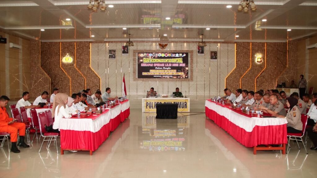 OKU Timur – Sidikbangsa.Com – Polres OKU Timur menggelar rapat koordinasi lintas sektoral untuk mematangkan kesiapan Operasi Lilin Musi 2025 sekaligus mengantisipasi potensi bencana menjelang libur Natal dan Tahun Baru. Rakor digelar di Aula Wicaksana Laghawa, Rabu (10/12/2025), dipimpin Kapolres OKU Timur AKBP Adik Listiyono.