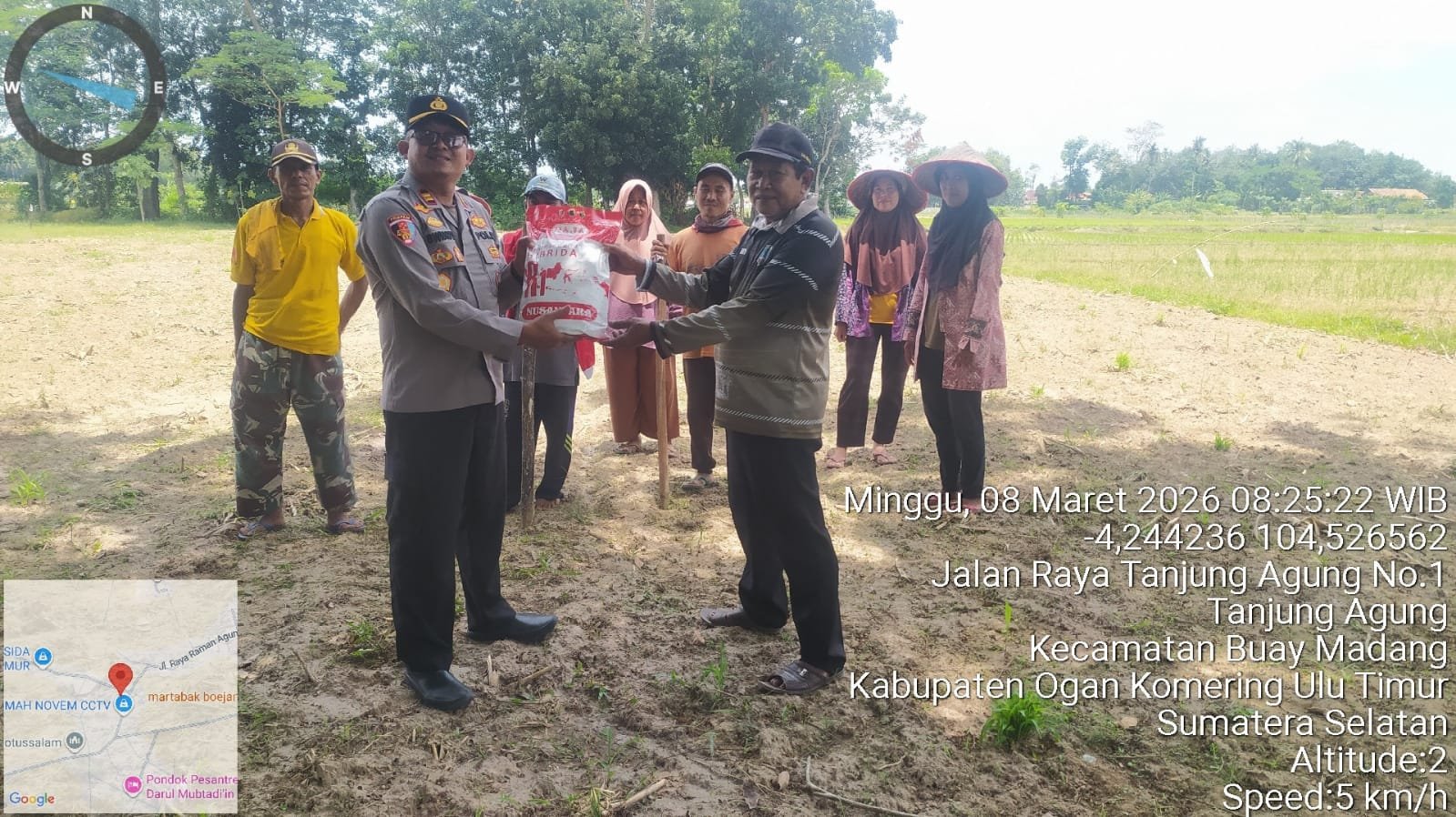 Turut hadir dalam kegiatan tersebut Kanit Binmas Polsek Buay Madang Timur Bripka Ari Wicaksono, Kepala Desa Tanjung Agung Suparman, serta para petani dan masyarakat desa yang ikut ambil bagian dalam proses penanaman.