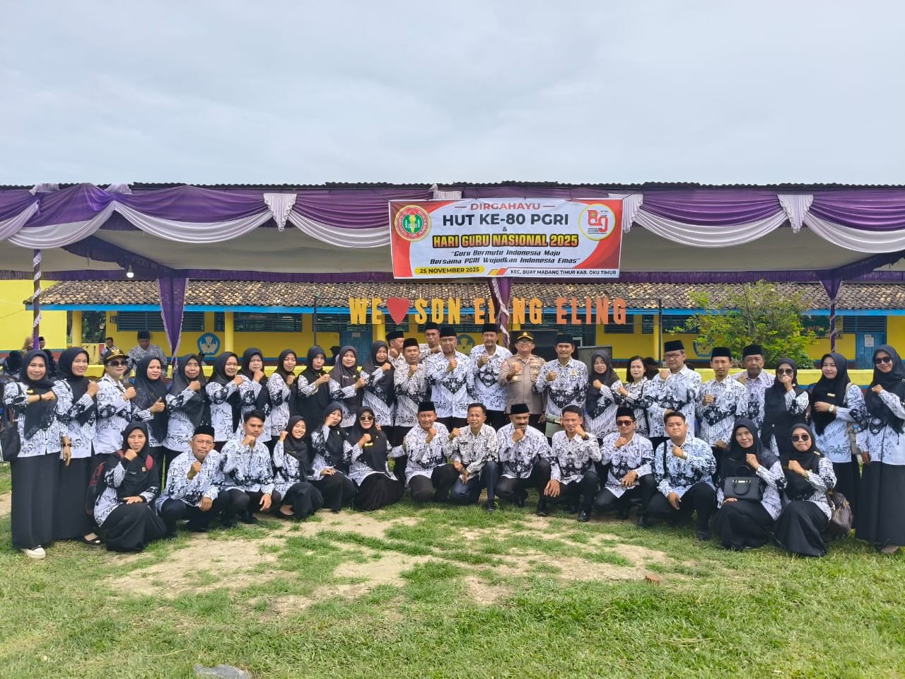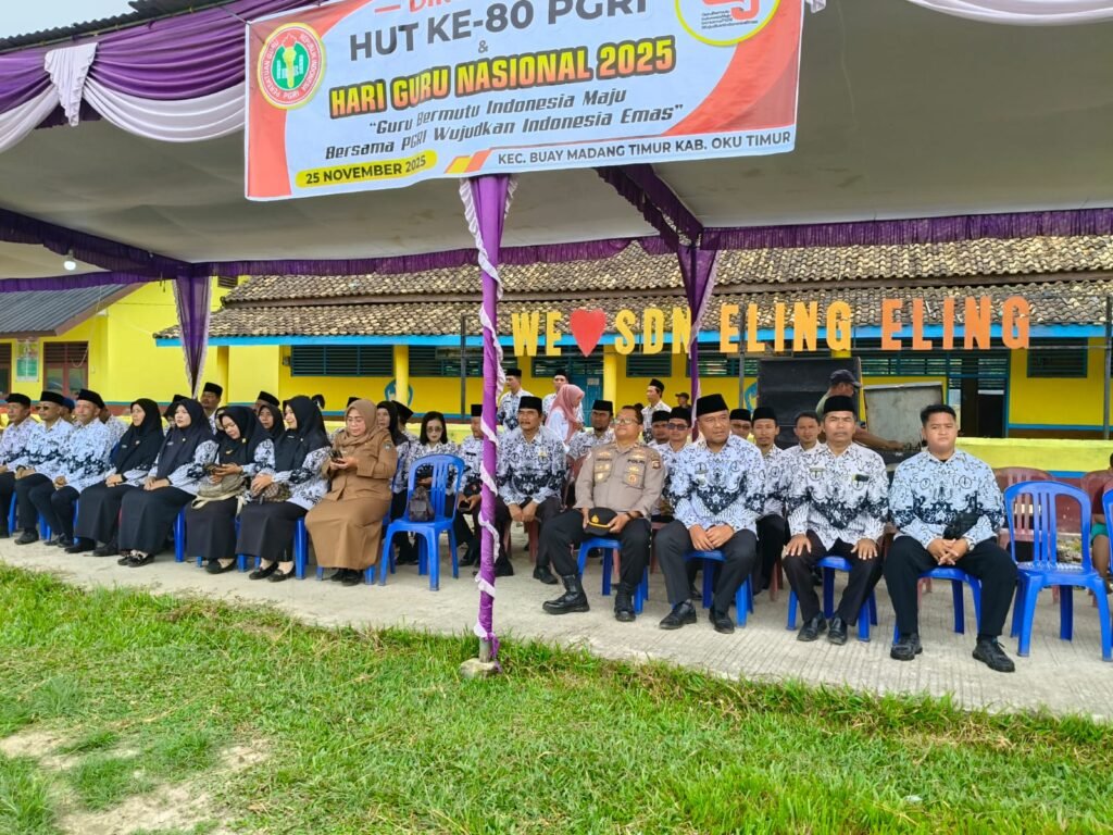OKU Timur – Sidikbangsa. Com – Kepolisian Sektor Buay Madang Timur memastikan seluruh rangkaian peringatan HUT PGRI ke-80 dan Hari Guru Nasional (HGN) 2025 di Kecamatan Buay Madang Timur berlangsung aman, tertib, dan kondusif. Upacara digelar di Lapangan SDN Eling-eling, Desa Tanjung Sari, Selasa (25/11/2025).