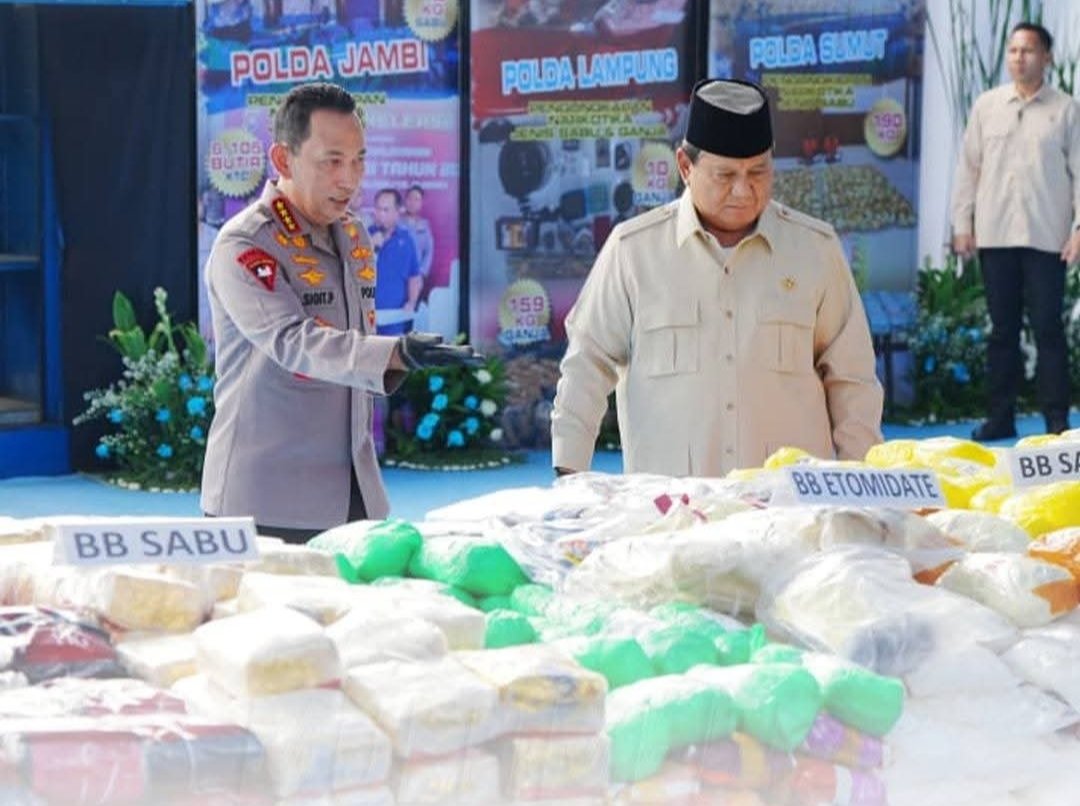 Jakarta —Sidikbangsa.com Presiden Republik Indonesia Jenderal TNI (Purn.) H. Prabowo Subianto memimpin langsung kegiatan pemusnahan 2,1 ton narkotika dari total 214,84 ton barang bukti senilai sekitar Rp29,37 triliun, hasil pengungkapan jajaran Kepolisian Negara Republik Indonesia (Polri) selama satu tahun terakhir.
