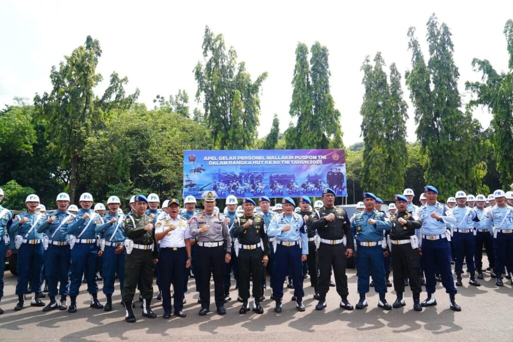 Menjelang puncak peringatan Hari Ulang Tahun (HUT) ke-80 Tentara Nasional Indonesia (TNI) pada 5 Oktober 2025 mendatang, Pusat Polisi Militer TNI (Puspom TNI) menggelar Apel Gelar Personel Pengawalan Lalu Lintas dan Parkir (Wallakir) di kawasan Monumen Nasional (Monas), Jakarta Pusat, Senin (22/9).