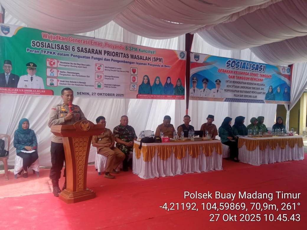 OKU Timur – Sidikbangsa.Com – Dalam upaya meningkatkan derajat kesehatan masyarakat dan memperkuat ketahanan keluarga, Tim Penggerak PKK Kabupaten Ogan Komering Ulu (OKU) Timur menggelar kegiatan Sosialisasi Posyandu 6 Standar Pelayanan Minimal (SPM) di halaman Kantor Desa Berasan Mulya, Kecamatan Buay Madang Timur, Senin (27/10/2025).