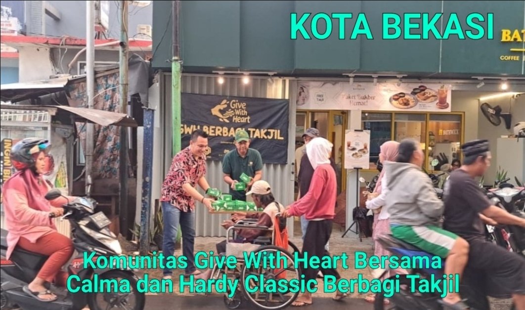 Kota Bekasi, sidikbangsa.com – Semangat berbagi di bulan suci Ramadan kembali ditunjukkan oleh sejumlah komunitas di Kota Bekasi. Komunitas Give With Heart berkolaborasi dengan Bathwick Coffee, Hardy Classic, dan Calma Indonesia menggelar aksi sosial dengan membagikan 500 paket takjil kepada masyarakat di Jalan Ki Mangun Sarkoro, Bekasi Timur, Jumat (13/3/2026).