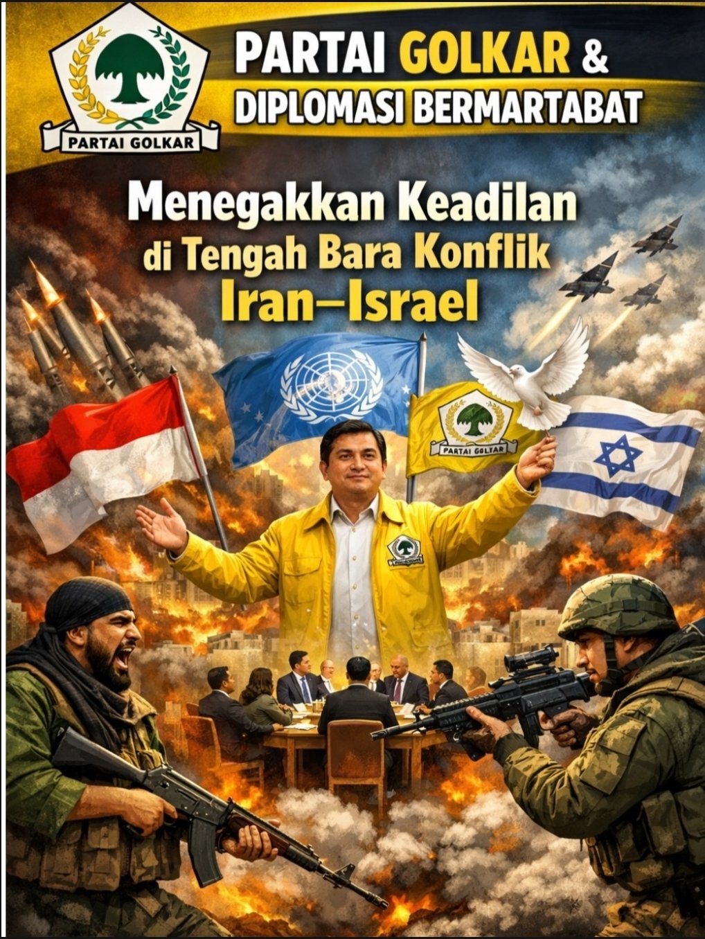 Melalui pernyataan Dave Laksono dan Bahlil Lahadalia, Golkar membentuk satu garis tegas: Indonesia harus bersuara, bertindak, dan tetap bermartabat. Diplomasi bukan kelemahan, melainkan kekuatan peradaban.